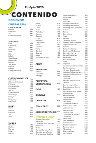 LA ROCHEREARCOROCABERTG-E-TCARLISLECERVEZASTEQUILEROSACCESORIOS PARA BARPERPETUALUNBREAKABLECHEF & SOMMELIERPERPETUALUNNOVICRILAAbeilleOuessantZincComplementosOllas y CacerolasSart%u00e9nesL%u00e1mpara para FlameoPaellerasWoksCanastillas para Fre%u00edrCocedor para PastaCharola para RostizarElisaExcaliburSaltoPrincesaVinaBrioEskaleWest LoopBroadwayGranityStack UpIslandePilsnerComplementosCabernetCabernet CocktailPrimaryPrimary ColorPrimarificSpiritsChampagneReveal UpSublymSequenceArchitectStripeTiki VibesVintageUnnoFractalEternityTikiWildVictoriaMalbecMenc%u00edaSyrahMerlot439440440441516520522522522522522522442443446447448449449450451452453454455456461461462462462463463464464465465484484485466467468468469470470471472473ProEpta 2026CONTENIDOCRISTALER%u00cdACOCINANDOBEBIENDO474474475476477477478478479479480480481481482482483483489490494500506486PinotRubierSeiraAialaPalladiumKoshuCocktailOuroMarsellaT-Up StackStackSaphiraSidraDunkelCognacNapaComplementos523524524526526527528530530530531531531532532532532532532533534535536536538543543544545550552555555555555555555557557557557558558560562562564564565566567567568568569569569Cacerolas HierroBatidoresBowlsBrochasMangas PastelerasMoldes para HornoMoldes para ChocolateDullasTamizCortadoresArosRejillasCharolas HornoTapetes para HornearPapel SiliconadoRodillosTazas MedidorasCucharas MedidorasCernidor HarinaJarras MedidorasEsp%u00e1tulasPorcionadoresSif%u00f3nSopletesInserto Acero InoxidableContenedoresKit para DescongelarInsertos PolicarbonatoInsertos PolipropilenoMamilasCuchillosAfilador de CuchillosChairasBarras Magn%u00e9ticasGuantes para CocinaCuchillasCortadores para MasaMandolinasRebanadoresDescamadoresRalladoresPeladoresDescorazonadoresTablas para CorteVolteadoresRaspadoresCucharonesCucharas de ServicioColadoresEmbudosEspumaderasBalanzonesEspolvoreadoresTerm%u00f3metrosAbrelatasExprimidoresPica Hielos