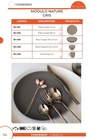 COMIENDOVAJILLACOMIENDO134M%u00d3DULO NATURE GRISBowl Coupe 19 oz 17 cm Bowl Peque%u00f1o 10 x 6 cmTarro Mug 11 ozPlato Coupe 21 cmPlato Coupe 28 cm184-099184-098184-096184-091184-090C%u00d3DIGODESCRIPCI%u00d3NPRODUCTO