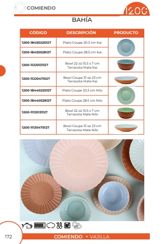 COMIENDOVAJILLACOMIENDO172BAH%u00cdAPlato Coupe 20.3 cm KaiBowl 22 oz 15.5 x 7 cmTerracota Mate KaiBowl Coupe 31 oz 23 cmTerracota Mate KaiBowl Coupe 31 oz 23 cmTerracota Mate NiloBowl 22 oz 15.5 x 7 cmTerracota Mate NiloPlato Coupe 20.3 cm NiloPlato Coupe 28.5 cm KaiPlato Coupe 28.5 cm Nilo1200-1843052812T1200-112J047512T1200-1844052812T1200-111J047512T1200-1843022012T1200-112J013112T1200-1844022012T1200-111J013112TC%u00d3DIGODESCRIPCI%u00d3NPRODUCTO