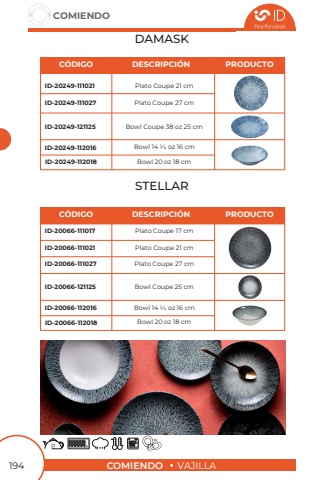 COMIENDOVAJILLACOMIENDO194DAMASKSTELLARPlato Coupe 27 cmPlato Coupe 27 cmPlato Coupe 17 cmPlato Coupe 21 cmPlato Coupe 21 cmID-20249-111027ID-20066-111027ID-20066-111017ID-20249-111021ID-20066-111021C%u00d3DIGOC%u00d3DIGODESCRIPCI%u00d3NDESCRIPCI%u00d3NPRODUCTOPRODUCTOBowl Coupe 38 oz 25 cmBowl Coupe 25 cmID-20249-121125ID-20066-121125Bowl 14 1/4 oz 16 cmBowl 14 1/4 oz 16 cmBowl 20 oz 18 cmBowl 20 oz 18 cmID-20249-112016ID-20066-112016ID-20249-112018ID-20066-112018