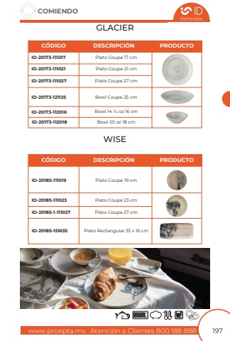 www.proepta.mxAtenci%u00f3n a Clientes 800 188 888COMIENDO197GLACIERWISEPlato Coupe 27 cmPlato Coupe 17 cmPlato Coupe 21 cmID-20173-111027ID-20173-111017ID-20173-111021C%u00d3DIGODESCRIPCI%u00d3NPRODUCTOID-20173-121125Bowl Coupe 25 cmBowl 14 1/4 oz 16 cmBowl 20 oz 18 cmID-20173-112016ID-20173-112018Plato Coupe 19 cmPlato Coupe 23 cmPlato Coupe 27 cmPlato Rectangular 35 x 16 cmID-20185-111019ID-20185-111023ID-20185-1-111027ID-20185-151635C%u00d3DIGODESCRIPCI%u00d3NPRODUCTO