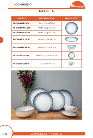 COMIENDOVAJILLACOMIENDO218NEBULAPlato Coupe 21 cmPlato Coupe 24 cmPE-DGNNPR27C10Plato Coupe 27 cmPE-DGNNPR21C10PE-DGNNPR24C10C%u00d3DIGODESCRIPCI%u00d3NPRODUCTOBowl Coupe 24 cmBowl 18 1/2 oz 16 cmPlato P/Taza Caf%u00e9 15 cmTaza Caf%u00e9 7 3/4 ozPE-DGNNDC26C10PE-DGNNRB16C10PE-DGCLSA15C10PE-DGCLCU23C10