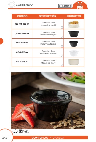COMIENDOVAJILLACOMIENDO248MELAMINARamekin 2 ozMelamina MarfilRamekin 4 ozMelamina NegroRamekin 2 ozMelamina NegroRamekin 2 ozMelamina BlancoRamekin 4 ozMelamina IvoryGE-RM-200-IVGE-RM-400-BKGE-S-620-BKGE-S-620-WGE-S-640-IVC%u00d3DIGODESCRIPCI%u00d3NPRODUCTO