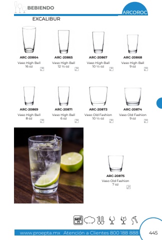www.proepta.mxAtenci%u00f3n a Clientes 800 188 888BEBIENDO445Vaso High Ball16 ozVaso High Ball6 ozVaso High Ball12 1/2 ozVaso Old Fashion10 1/2 ozVaso High Ball10 1/2 ozVaso Old Fashion9 ozVaso Old Fashion7 ozVaso High Ball9 ozVaso High Ball8 ozARC-20864ARC-20871ARC-20865ARC-20873ARC-20867ARC-20874ARC-20875ARC-20868ARC-20869242424242424242424EXCALIBUR