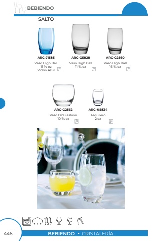 BEBIENDO446BEBIENDOCRISTALER%u00cdAVaso High Ball11 3/4 ozVaso High Ball16 3/4 ozVaso High Ball11 3/4 ozVidrio AzulVaso Old Fashion10 3/4 ozTequilero2 ozARC-J1585ARC-G5828ARC-G2560ARC-G2562ARC-N58342424242424SALTO