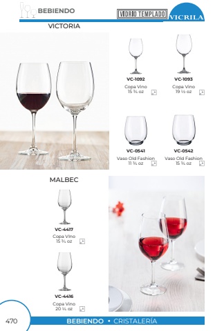 BEBIENDO470BEBIENDOCRISTALER%u00cdAVICTORIAMALBECVaso Old Fashion11 3/4 ozCopa Vino15 3/4 ozCopa VIno15 3/4 ozVaso Old Fashion15 3/4 ozCopa Vino19 1/2 ozCopa Vino20 1/4 ozVC-0541VC-1092VC-4417VC-0542VC-1093VC-4416666666