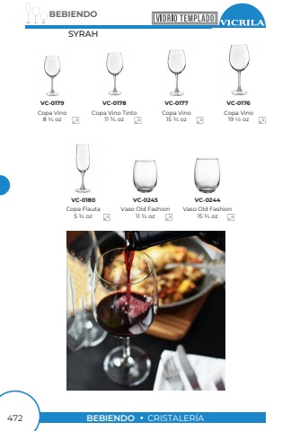 BEBIENDO472BEBIENDOCRISTALER%u00cdASYRAHCopa Vino19 1/2 ozCopa Flauta5 3/4 ozVaso Old Fashion11 3/4 ozVaso Old Fashion15 3/4 ozCopa Vino Tinto11 3/4 ozCopa Vino15 3/4 ozCopa Vino8 1/4 ozVC-0176VC-0180VC-0245VC-0244VC-0179VC-0178VC-01776666666