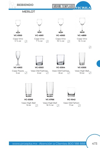 www.proepta.mxAtenci%u00f3n a Clientes 800 188 888BEBIENDO473Copa Vino14 1/2 ozCopa Flauta5 ozVaso High Ball12 ozVaso Old Fashion6 ozVaso High Ball16 3/4 ozVaso Old Fashion8 ozVaso High Ball10 ozVaso Old Fahion11 ozCopa Vino7 3/4 ozCopa Vino10 1/4 ozCopa Vino5 3/4 ozVC-4899VC-4903VC-0306VC-0303VC-0766VC-0304VC-0305VC-1042VC-0100VC-4901VC-490066666666666MERLOT