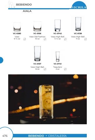 BEBIENDO476BEBIENDOCRISTALER%u00cdAAIALAVaso High Ball12 ozVaso High Ball5 1/2 ozVaso6 3/4 ozVaso High Ball11 ozVaso Old Fashion10 ozTequilero2 ozVC-0137VC-0283VC-0156VC-0742VC-0138VC-0741666666