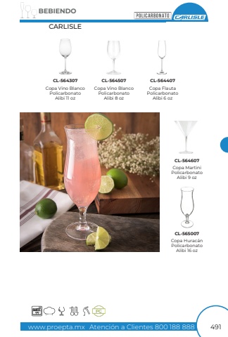 www.proepta.mxAtenci%u00f3n a Clientes 800 188 888BEBIENDO491Copa Vino BlancoPolicarbonato Alibi 11 ozCopa Vino BlancoPolicarbonato Alibi 8 ozCopa MartiniPolicarbonato Alibi 9 ozCopa Hurac%u00e1nPolicarbonato Alibi 16 ozCopa FlautaPolicarbonato Alibi 6 ozCL-564307CL-564507CL-564607CL-565007CL-564407CARLISLE