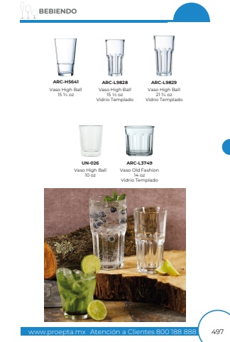 www.proepta.mxAtenci%u00f3n a Clientes 800 188 888BEBIENDO497Vaso High Ball15 3/4 ozVaso High Ball21 3/4 ozVidrio TempladoVaso High Ball15 1/2 ozVidrio TempladoARC-H5641ARC-L9828ARC-L9829Vaso High Ball10 ozUN-026Vaso Old Fashion14 ozVidrio TempladoARC-L3749