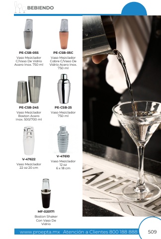 www.proepta.mxAtenci%u00f3n a Clientes 800 188 888BEBIENDO509Vaso MezcladorC/Vaso De VidrioAcero Inox. 750 mlVaso Mezclador Cobre C/Vaso De Vidrio Acero Inox. 750 mlVaso MezcladorBoston AceroInox. 500/700 mlVaso Mezclador750 mlVaso Mezclador22 oz 20 cmVaso Mezclador12 oz6 x 18 cmPE-CSB-05SPE-CSB-05CPE-CSB-24SPE-CSB-25V-47622V-47610Boston ShakerCon Vaso De VidrioMF-020171