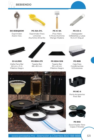 www.proepta.mxAtenci%u00f3n a Clientes 800 188 888BEBIENDO511ExprimidorAcero Inox.Exprimidor ParaLimonesAluminio AmarilloPica Hielo6 Picos AluminioMango MaderaDestapadorD/Botellas y Latas10.2 cm NiquelMalla Para Bar60 cm x 3 mPl%u00e1stico NegroTapete Bar68 x 8.5 cmPorta AccesoriosPara BarEscarchador ParaCopas 3 NivelesCaja ParaCondimentos6 DivisionesTapete Bar30 x 45 cmPl%u00e1stico NegroBO-BSBQ0599PE-JSA-3YLPE-IC-9APE-CO-4SJ-UL5105PE-BSM-273PE-BC-6PE-BSSPE-BSM-1218PE-B6B