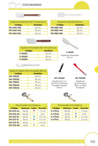 www.proepta.mxAtenci%u00f3n a Clientes 800 188 888535COCINANDOEsp%u00e1tula 12 cmSilicona C/MangoExoglass NegroSilveoEsp%u00e1tula Miserable35 cmEsp%u00e1tulaTerm%u00f3metro38.5 cm RojoExoglassMF-114005V-52013MF-113090PE-HHS-10RV-52010MF-113025PE-RBS-10RPE-HHS-14RV-52023MF-113030PE-RBS-14RPE-HHS-16HV-52026MF-113035MF-113040MF-113045PE-RBS-16R25 cm25 cm25 cm25 cm35 cm35 cm30 cm35 cm40 cm42 cm35 cm40 cm45 cm40 cmC%u00f3digoC%u00f3digoC%u00f3digoC%u00f3digoEsp%u00e1tula Miserable Alta TemperaturaEsp%u00e1tula Miserable Alta TemperaturaEsp%u00e1tula Rigida Recta Exoglass BlancaEsp%u00e1tula Miserable BlancaMedidasMedidasMedidasMedidasPE-ICD-24V-47144PE-ICD-20V-47143PE-ICD-16V-47142PE-ICD-12V-47141PE-ICD-10PE-ICD-08No.241 3/4 ozNo.201 5/8 ozNo.202 ozNo.162 ozNo.162 3/4 ozNo.122 3/4 ozNo.123 1/4 ozNo.103 1/4 ozNo.103 3/4 ozNo.84 ozC%u00f3digoC%u00f3digoPorcionador Con PalancaPorcionador Con PalancaN%u00fameroColorPorci%u00f3nN%u00fameroColorPorci%u00f3n