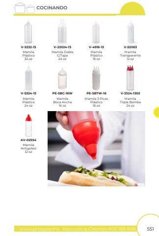 www.proepta.mxAtenci%u00f3n a Clientes 800 188 888551COCINANDOMamilaBoca Ancha16 ozMamila 3 PicosPl%u00e1stico16 ozMamilaTriple Bomba24 ozMamilaPl%u00e1stico24 ozV-5324-13PE-SBC-16WPE-SBTW-16V-3324-1302MamilaAntigoteo12 ozAV-02554MamilaPl%u00e1stico32 ozMamila DobleC/Tapa24 ozMamilaPl%u00e1stico16 ozMamilaTransparente12 ozV-5232-13V-22024-13V-4916-13V-52063