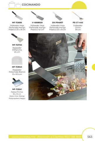 www.proepta.mxAtenci%u00f3n a Clientes 800 188 888563COCINANDOVolteador HojaPerforada MangoPl%u00e1stico 20 x 8 cmVolteador HojaPerforada MangoPl%u00e1stico 42 cmVolteador HojaPerforada MangoPl%u00e1stico 20 x 8 cmMF-112666V-4808920DX-P94857VolteadorChino39 cmPE-CT-44SRaspadorP/Plancha24 cmRaspadorPoliamida Blanco12 x 9.5 cmPaleta P/Untar18 x 10 cmAcero Inox. Mango Polipropileno NegroMF-112722MF-112840MF-112641