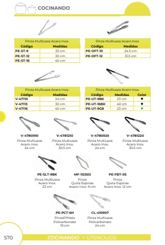 570COCINANDOUTENCILIOSCOCINANDOPE-ST-9PE-OFT-10PE-ST-12PE-OFT-12PE-ST-1623 cm24.5 cm30 cm31.5 cm40 cmC%u00f3digoC%u00f3digoPinza Multiusos Acero Inox.Pinza Multiusos Acero Inox.MedidasMedidasV-47110V-47113V-4711624 cm30 cm40 cmC%u00f3digoPinza Multiusos Acero Inox.MedidasPE-UT-9BKPE-UT-9GRPE-UT-16BK23 cm23 cm40 cmC%u00f3digoPinza Multiusos Acero Inox.MedidasColorPinza MultiusosAcero Inox.24 cmV-4780910Pinza MultiusosAcero Inox.30.5 cmPinza MultiusosAcero Inox.24 cmPinza MultiusosAcero Inox.30.5 cmV-4781210V-4780920V-4781220Pinza MultiusosAcero Inox.23 cmPE-SLT-9BKPinzaQuita EspinasAcero Inox. 12 cmPinzaQuita EspinasAcero Inox. 9 cmMF-112503PE-FBT-05PinzaP/HieloPolicarbonato19 cmPE-PCT-6HPinza MultiusosPolicarbonato24 cmCL-410907