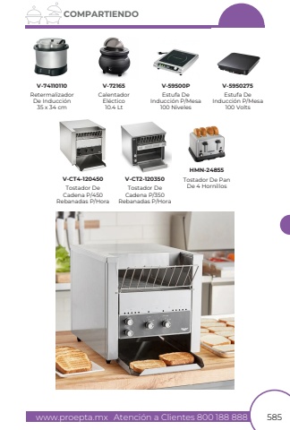 www.proepta.mxAtenci%u00f3n a Clientes 800 188 888585COMPARTIENDOEstufa DeInducci%u00f3n P/Mesa100 VoltsEstufa De Inducci%u00f3n P/Mesa100 NivelesTostador DeCadena P/350Rebanadas P/HoraRetermalizadorDe Inducci%u00f3n35 x 34 cmTostador DeCadena P/450Rebanadas P/HoraCalentadorEl%u00e9ctico10.4 LtTostador De PanDe 4 HornillosV-59500PV-5950275V-CT2-120350V-74110110V-CT4-120450V-72165HMN-24855