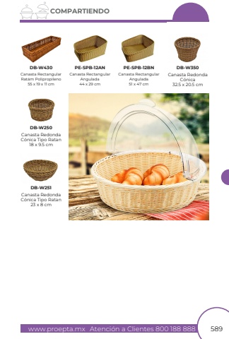 www.proepta.mxAtenci%u00f3n a Clientes 800 188 888589COMPARTIENDOCanasta RectangularAngulada44 x 29 cmCanasta RectangularRat%u00e1m Polipropileno55 x 19 x 11 cmDB-W430PE-SPB-12ANCanasta RectangularAngulada51 x 47 cmPE-SPB-12BNCanasta RedondaC%u00f3nica32.5 x 20.5 cmCanasta RedondaC%u00f3nica Tipo Ratan18 x 9.5 cmDB-W350DB-W250Canasta RedondaC%u00f3nica Tipo Ratan23 x 8 cmDB-W251