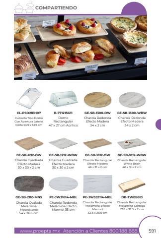 www.proepta.mxAtenci%u00f3n a Clientes 800 188 888591COMPARTIENDOCubierta Tipo DomoCon Apertura Lateral Corta 53.9 x 33.9 cmCL-PSD21EH07DomoRectangular47 x 27 cm Acr%u00edlicoB-771215G11Charola CuadradaEfecto Madera30 x 30 x 2 cmCharola CuadradaEfecto Madera30 x 30 x 2 cmGE-SB-1212-OWGE-SB-1212-WBWCharola RedondaEfecto Madera34 x 2 cmCharola RectangularEfecto Madera46 x 31 x 2 cmCharola RectangularWhite Brich46 x 31 x 2 cmCharola RedondaEfecto Madera34 x 2 cmGE-SB-1300-WBWGE-SB-1812-OWGE-SB-1812-WBWGE-SB-1300-OWCharola Rectangular Melamina Efecto Marmol32.5 x 26.5 cmPE-JW552114-MBLCharola OvaladaMelaminaMoonstone54 x 26.6 cmGE-SB-2110-MNSCharola RedondaMelamina EfectoMarmol 35 cmPE-JW31614-MBLCharola RectangularMelamina Corteza17.6 x 32.5 x 2 cmDB-TWB9613