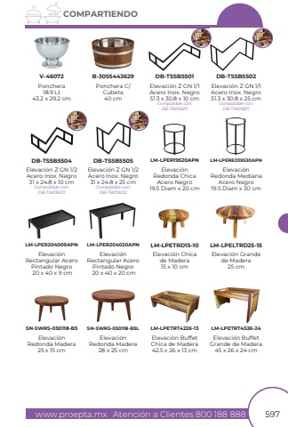 www.proepta.mxAtenci%u00f3n a Clientes 800 188 888597COMPARTIENDOElevaci%u00f3n Z GN 1/1 Acero Inox. Negro 51.3 x 30.8 x 10 cmElevaci%u00f3n Z GN 1/1 Acero Inox. Negro 51.3 x 30.8 x 25 cmElevaci%u00f3n Z GN 1/2 Acero Inox. Negro 31 x 24.8 x 10 cmElevaci%u00f3n Z GN 1/2 Acero Inox. Negro 31 x 24.8 x 25 cmDB-TSSB5501DB-TSSB5502DB-TSSB5504DB-TSSB5505Ponchera18.9 Lt43.2 x 29.2 cmPonchera C/Cubeta40 cmV-46072B-3055443629Elevaci%u00f3nRedonda Mediana Acero Negro19.5 Diam x 30 cmElevaci%u00f3nRedonda Chica Acero Negro19.5 Diam x 20 cmLM-LPER19520APNLM-LPERED19530APNElevaci%u00f3nRectangular Acero Pintado Negro 20 x 40 x 9 cmElevaci%u00f3nRectangular Acero Pintado Negro 20 x 40 x 20 cmLM-LPER204009APNLM-LPER204020APNElevaci%u00f3n Grandede Madera25 cmElevaci%u00f3n Chicade Madera15 x 10 cmElevaci%u00f3n Redonda Madera25 x 15 cmElevaci%u00f3n Redonda Madera28 x 25 cmLM-LPETRD15-10LM-LPELTRD25-15SN-SWRS-050118-B5SN-SWRS-050118-B5LElevaci%u00f3n Buffet Chica de Madera42.5 x 26 x 13 cmElevaci%u00f3n Buffet Grande de Madera45 x 26 x 24 cmLM-LPETRT4226-13LM-LPETRT4526-24Compatible con:DB-TWD9211Compatible con:DB-TWD9212Compatible con:DB-TWD9212Compatible con:DB-TWD9211