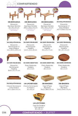 598COMPARTIENDOBUFFETCOMPARTIENDOElevaci%u00f3n Rectangular C/Asas Madera 42.1 x 25.8 x 5.2 cmElevaci%u00f3n RectangularMadera 24.9 x 21.2 x 8 cmElevaci%u00f3n RectangularMadera 30 x 21 x 11 cmElevaci%u00f3n RectangularMadera 35 x 21 x 14 cmPlato RedondoMadera 20 x 2 cmPlato RedondoMadera 32 x 2 cmPlato RedondoMadera 26 x 2 cmElevaci%u00f3n RectangularMadera 39.9 x 21 x 17 cmElevaci%u00f3n Rectangular C/Asas Madera 44 x 25.9 x 23.5 cmSN-SWQ-070418-B4MSN-SWR-130418-B3SSN-SWR-130418-B3MSN-SWR-130418-B3LSN-SWR-130418-B3XLSN-SWRS-080517-B5SSN-SWRS-080517-B5LSN-SWRS-030118-B5SN-SWQ-070418-B4LCharola Rectangularde Madera40 x 26 cmCharola RectangularC/Asa Madera39.7 x 25.8 x 5.2 cmSN-SWQ-070418-B4SLM-LPCHRT4026Caja De Madera Con Letrero25 x 25 cmLM-LPCTP2525Caja S/TapaBamboo34.6 x 28.6 x 9 cmDB-BMO5513Caja S/TapaBamboo54.6 x 34.6 x 9 cmDB-BMO5514Elevaci%u00f3nBamboo Nimble20 x 16 x 15 cmElevaci%u00f3nBamboo Nimble28.5 x 20.5 x 15 cmElevaci%u00f3nBamboo Nimble29 x 37.5 x 15 cmDB-BMO4204ADB-BMO4202ADB-BMO4206ACompatible con:DB-TW4224Compatible con:DB-TW4222Compatible con:DB-TW4226