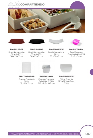 www.proepta.mxAtenci%u00f3n a Clientes 800 188 888607COMPARTIENDOBowl RectangularC/Labio 1.5 Lt36 x 25 x 7 cmBowl RectangularC/Labio 1.5 Lt36 x 25 x 7 cmBM-FUL03-FRBM-FUL03-BBBowl Cuadrado M1.6 Lt30 x 30 x 7 cmBowl Curazao Cuadrado Alto XXS8 x 8 x 5 cmBM-FS003-WWBM-BSD30-RMFuente CuadradaSalad Bar 0.75 Lt11.8 x 11.8 x 10.7 cmChina Bowl Xs12.5 x 12.5 x 6.5 cm0.5 LtFuente Cuadrada1.8 Lt12 x 12 x 15 cmBM-COMP07-BBBM-ISO12-WWBM-BSD21-WW
