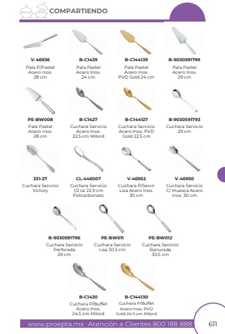 www.proepta.mxAtenci%u00f3n a Clientes 800 188 888611COMPARTIENDOPala P/PastelAcero Inox.28 cmCuchara ServicioRanurada30.5 cmCuchara ServicioAcero Inox.22.5 cm MilordCuchara P/BuffetAcero Inox.24.5 cm MilordCuchara P/BuffetAcero Inox. PVD Gold 24.5 cm MilordCuchara ServicioAcero Inox. PVD Gold 22.5 cmCuchara Servicio C/ Muesca Acero Inox. 30 cmCuchara ServicioPerforada29 cmCuchara Servicio Lisa 30.5 cmCuchara P/Servir Lisa Acero Inox.30 cmCuchara Servicio29 cmCuchara ServicioVictoryCuchara Servicio1/2 oz 22.9 cmPolicarbonatoV-46936PE-BW012B-C1427B-C1430B-C144130B-C144127V-46950B-9030591796PE-BW011V-46952B-9030591793331-27CL-446007Pala PastelAcero Inox.24 cmPala PastelAcero Inox.PVD Gold 24 cmPala PastelAcero Inox.29 cmPala PastelAcero Inox.28 cmB-C1439B-C144139B-9030591799PE-BW008