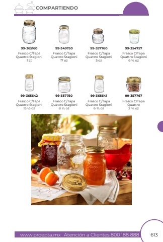 www.proepta.mxAtenci%u00f3n a Clientes 800 188 888613COMPARTIENDOFrasco C/TapaQuattro Stagioni5 ozFrasco C/TapaQuattro Stagioni1 LtFrasco C/TapaQuattro Stagioni8 1/4 ozFrasco C/TapaQuattro Stagioni6 3/4 ozFrasco C/TapaQuattro Stagioni17 ozFrasco C/TapaQuattro Stagioni13 1/2 ozFrasco C/TapaQuattro2 3/4 ozFrasco C/TapaQuattro Stagioni6 3/4 oz99-36516099-35776099-35775099-34975099-35475799-36564299-36564199-357767