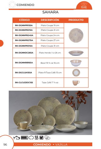COMIENDOVAJILLACOMIENDO96SAHARAPlato Coupe 21 cmPlato Coupe 27 cmPlato Coupe 31 cmPlato Coupe 15 cmPlato Coupe 24 cmRK-DGNNPR21SARK-DGNNPR27SARK-DGNNPR31SARK-DGNNPR15SARK-DGNNPR24SAC%u00d3DIGODESCRIPCI%u00d3NPRODUCTOBowl 19 3/5 oz 16 cmPlato P/Taza Caf%u00e9 15 cmTaza Caf%u00e9 7 7/9 ozRK-DGNNDC26SARK-DGNNRB16SARK-DGCLSA15SARK-CLCU23OC155Plato Hondo 1 Lt 26 cm